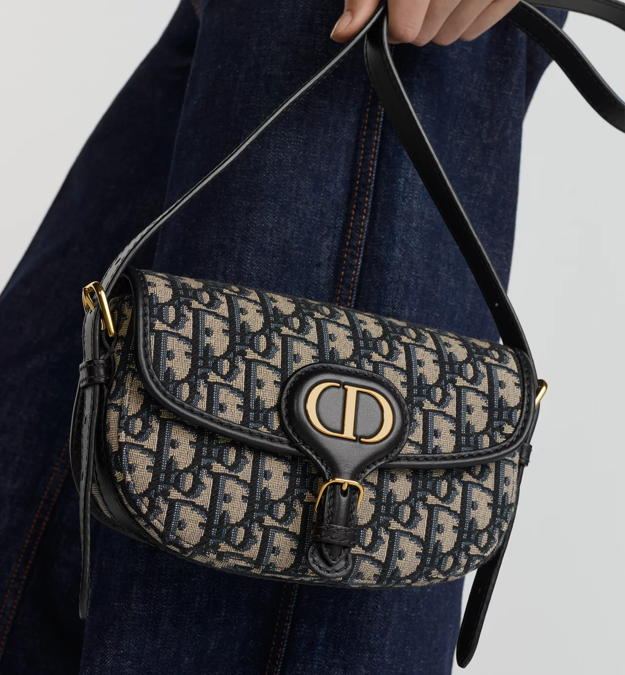 New for Cruise 2025. the Dior Bobby East-West bag offers a new take on the hobo silhouette with the sophisticated lines and harmonious proportions of the House emblem. The blue Dior Oblique jacquard style is accented by antique gold-finish metal details. Featuring a removable and adjustable strap with elegant pin buckles. the Dior Bobby bag can be carried by hand or worn over the shoulder for day or evening wear. or crossbody for a more sportswear look.