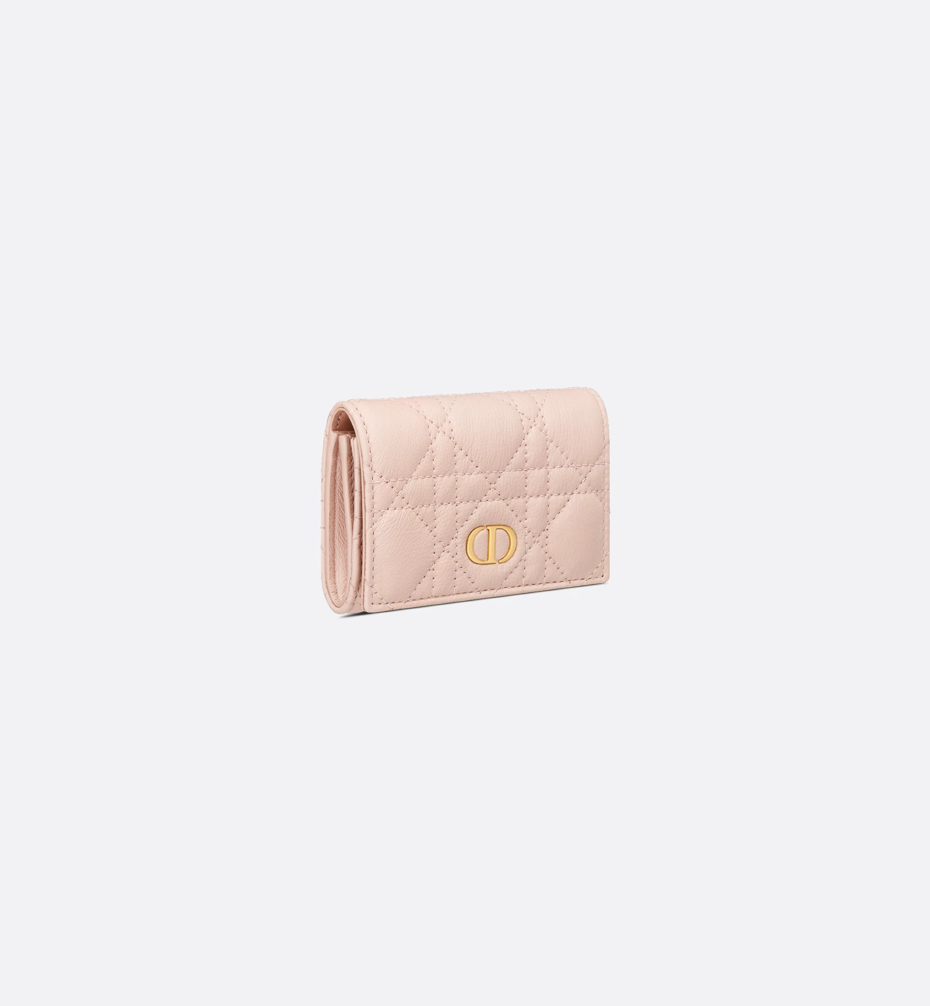 The Dior Caro Glycine wallet is distinguished by its compact and practical design. Crafted in cloud blue supple calfskin with Cannage stitching. it is enhanced by the CD signature on the front. Accommodating all of the essentials. the refined accessory will fit anywhere and can be paired with other Dior Caro creations.