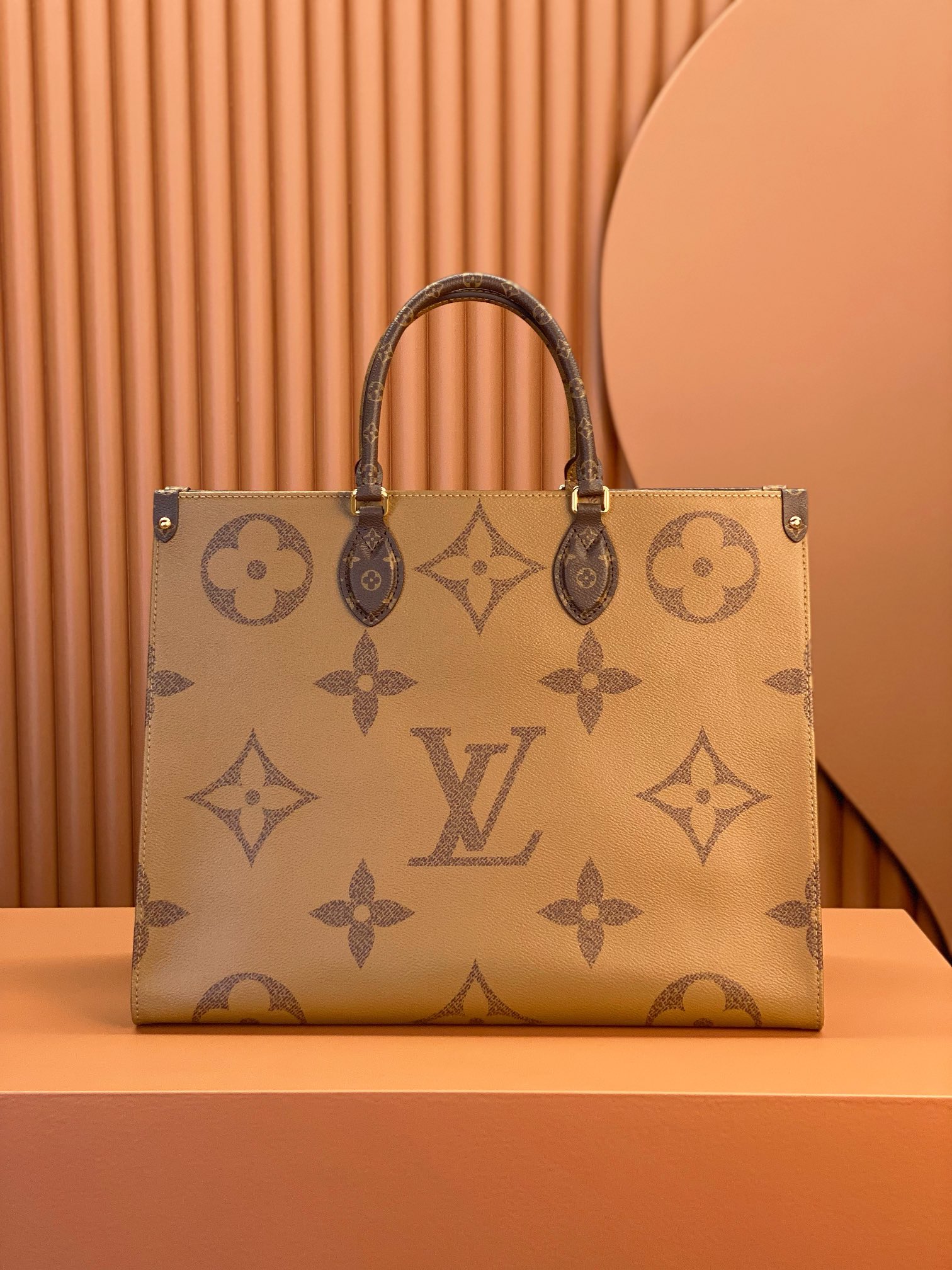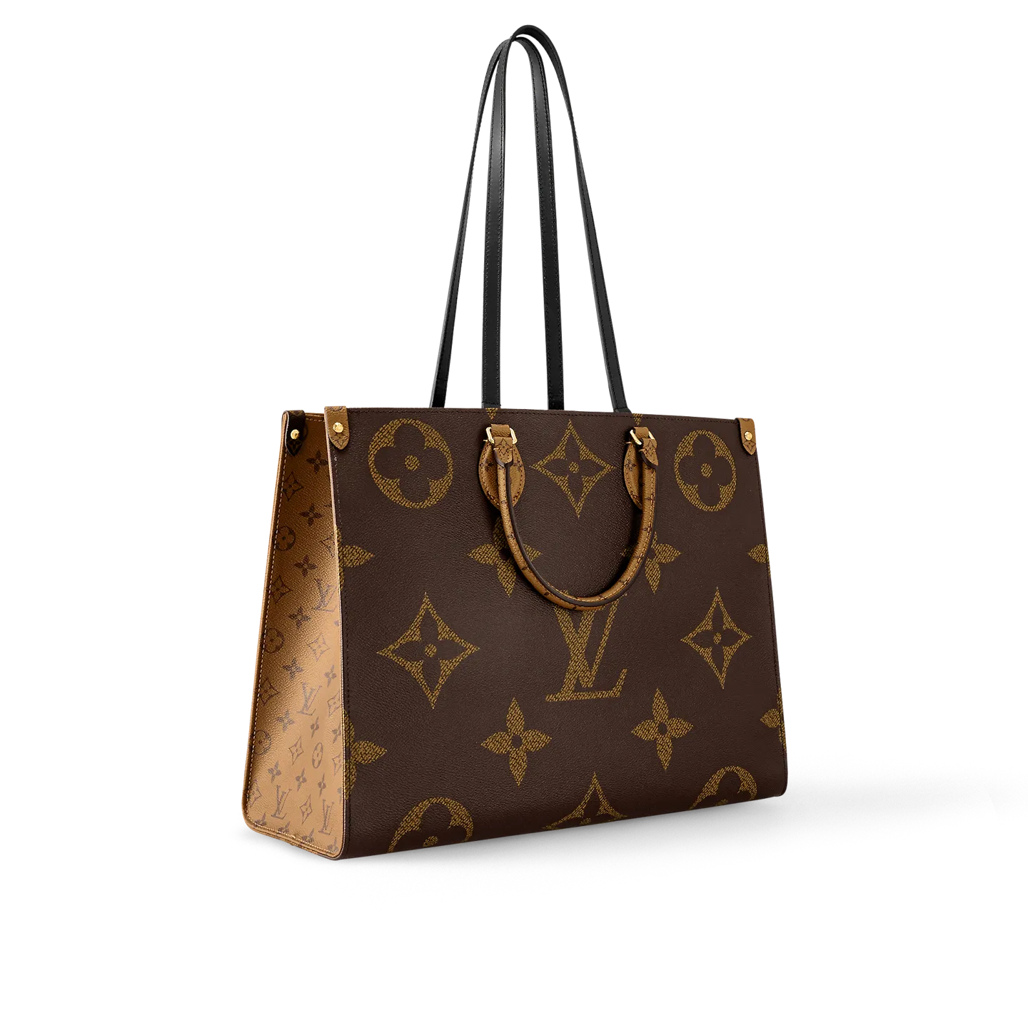 Fashioned from Monogram Giant canvas. the OnTheGo GM tote bag is as striking as it is practical. A Monogram Reverse pattern on the sides and handles creates a stylish contrast in color and scale. With its generous capacity. shoulder straps and iconic Toron top handles. this versatile GM model is an ideal bag for everyday wear.