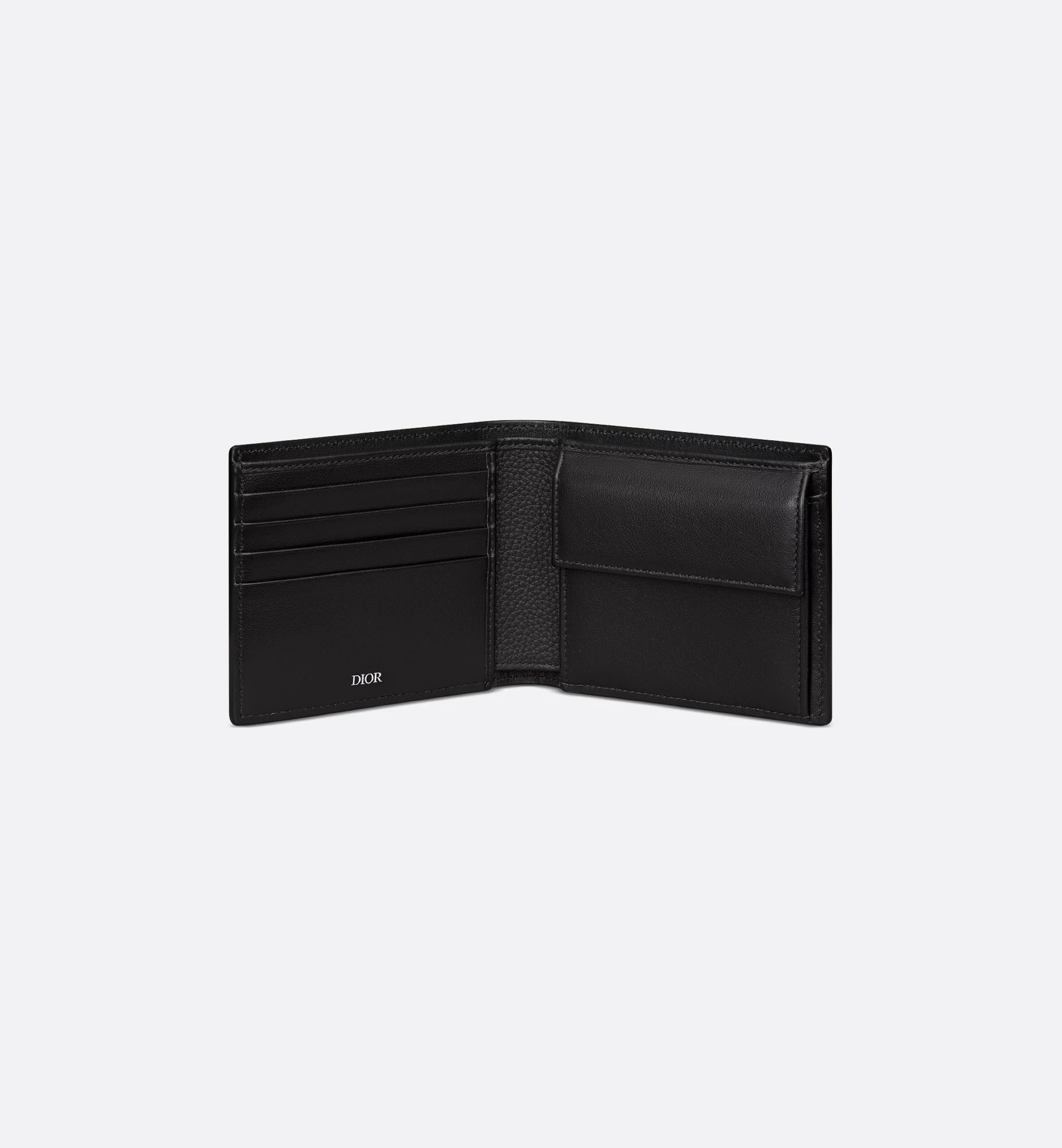 The Saddle bifold wallet is a refined accessory that demonstrates the House’s savoir-faire in leather marquetry. Crafted in black grained calfskin with beige and black Dior Oblique jacquard highlighting the iconic Saddle silhouette. it showcases an interior with two slip pockets for receipts. a double bill compartment. four card slots as well as a gusseted compartment for coins secured by a snap closure. Embellished with a Dior signature on the front. the bifold wallet will fit easily into any pocket or bag.