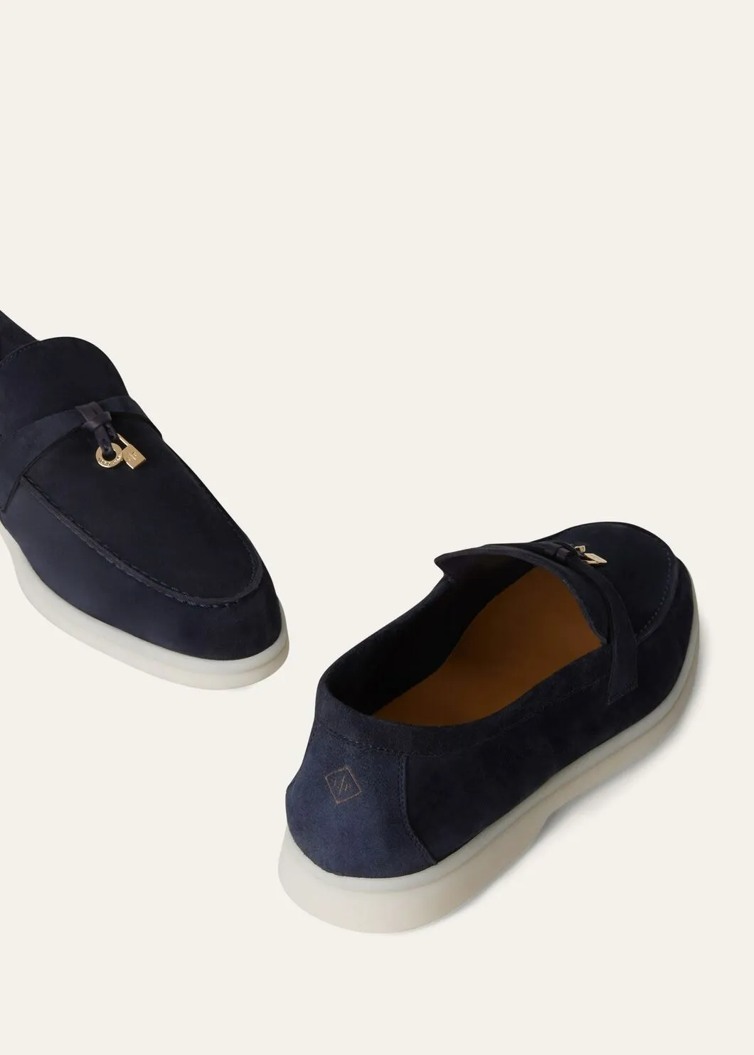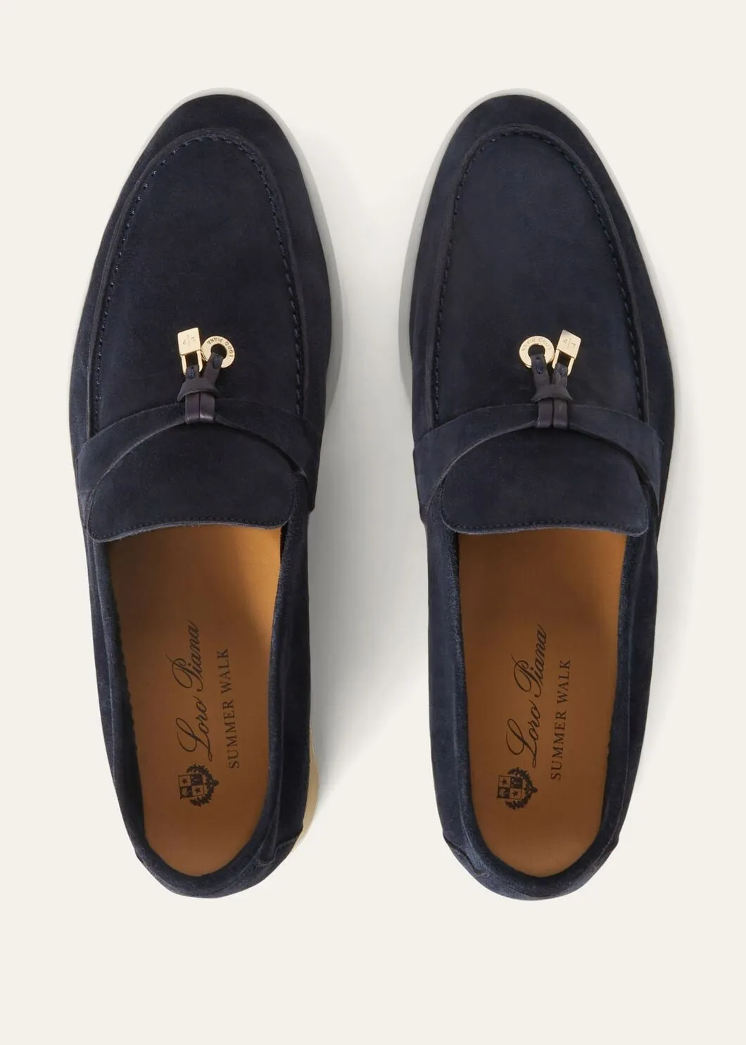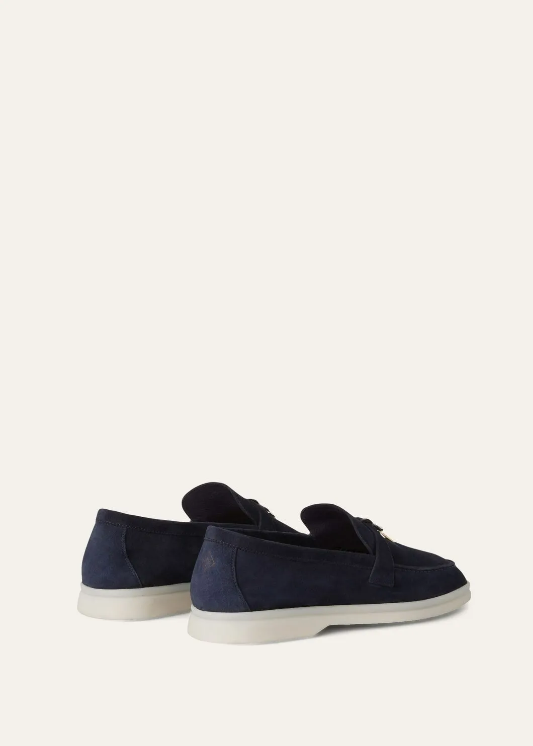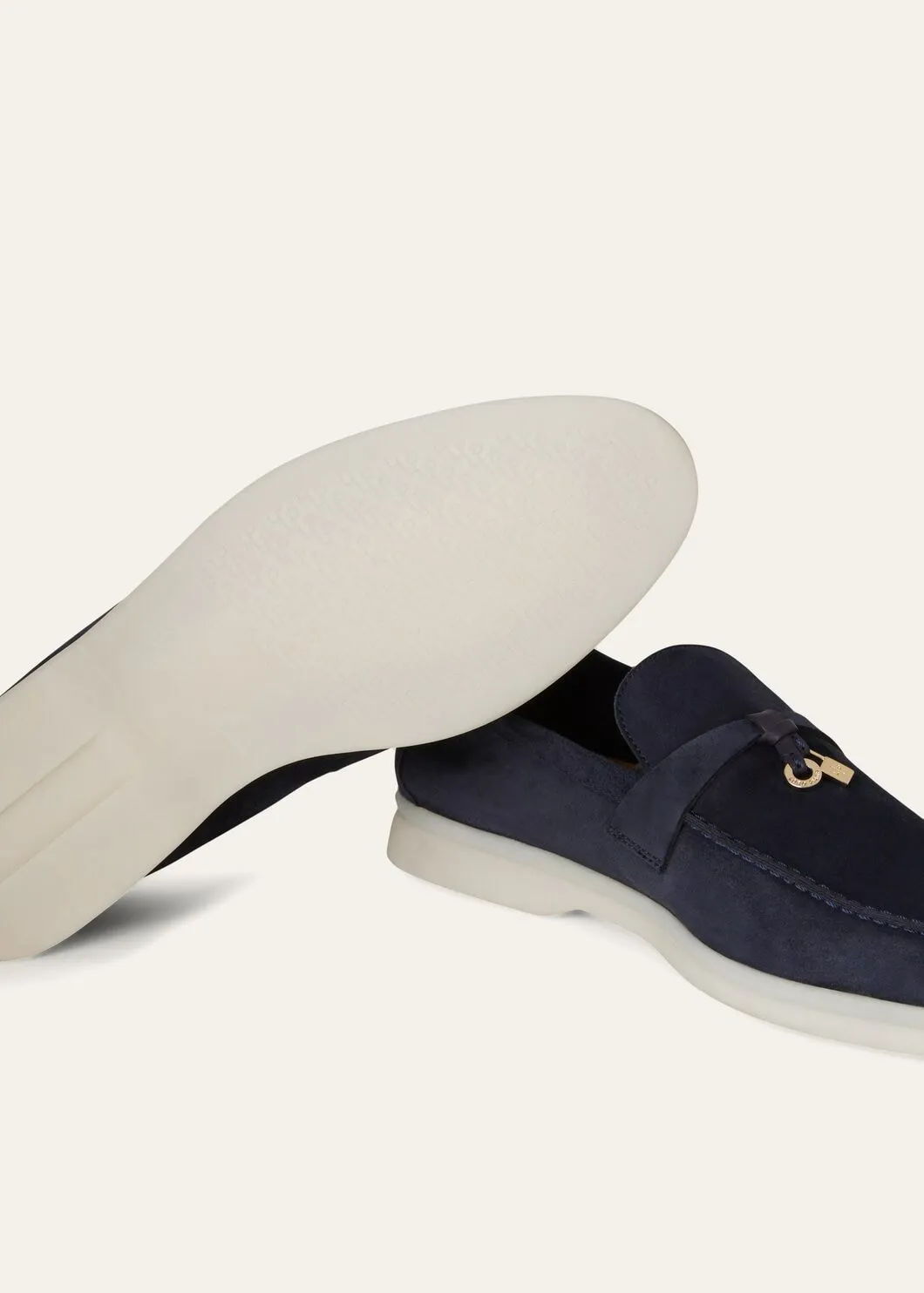 Comfortable. sporty loafers made from soft suede. They are enhanced with rubber soles — a common feature of all Loro Piana sportswear shoes. The front saddles are embellished with mini My Charms. Perfect for summers spent sailing. at the beach or in the city.